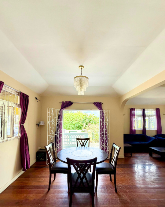 The main house includes a spacious living room, three comfortable bedrooms, and two bathrooms, with one bedroom featuring its own ensuite for added privacy. The home also offers a bright dining area with doors that open to bring natural light and fresh air into the space, creating a welcoming atmosphere for everyday living. A functional kitchen sits just off the dining area, making the layout convenient and practical.